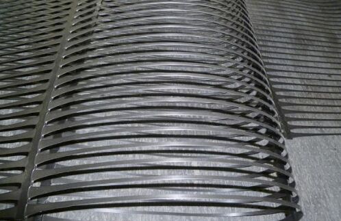 塑料土工格柵是經過拉伸形成的具有方形或矩形的聚合物網材,按其制造時拉伸方向的不同可為單向拉伸和雙向拉伸兩種。它是在經擠壓制出的聚合物板材(原料多為聚丙烯或高密度聚乙烯)上沖孔,然后在加熱條件下施行定向拉伸。單 向拉伸格柵只沿板材長度方向拉伸制成,而雙向拉伸 格柵則是繼續將單向拉伸的格柵再在與其長度垂直的方向拉伸制成。